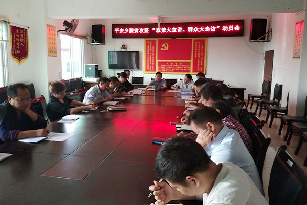 近日,平安乡召开脱贫攻坚“政策大宣讲、群众大走访”启动会,以扎实有效的工作迎接国家、省、市、县党政目标考核脱贫攻坚三方评估验收工作。乡机关全体工作人员和各村第一书记、书记、主任、文书及乡属部门负责人参加会议。