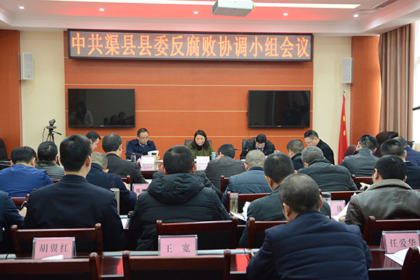 12 月27日,渠县县委召开反腐败协调小组会议,推进反腐败协调工作。县委常委、县纪委书记、县委反腐败协调小组组长杨子希,县委常委、县委政法委书记朱和志,县委常委、组织部长唐令彬出席会议并讲话。副县长、县公安局长李鸿杰,县人民法院院长董小飞,县人民检察院检察长张盛出席会议。