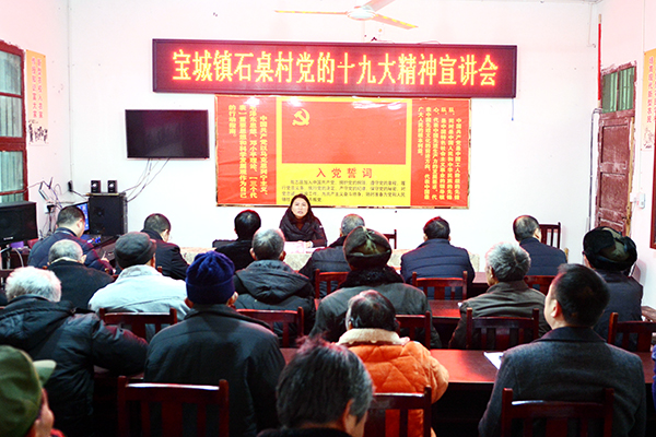 近日,县委常委、县纪委书记杨子希深入联系村宝城镇石桌村宣讲十九大精神,石桌村全体党员、村组干部及群众代表共六十余人聆听了宣讲报告。