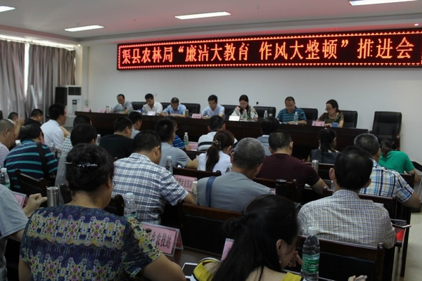 为深入贯彻落实中央、省委、市委和县委关于全面从严治党的部署要求,着力营造崇廉尚洁、风清气正的良好政治生态,推动全面从严治党向基层延伸,为党清源、为党强基,8月9日下午,渠县农林系统召开“廉洁大教育、作风大整顿”工作推进会,机关中层以上领导干部、局属各单位负责人参加会议。