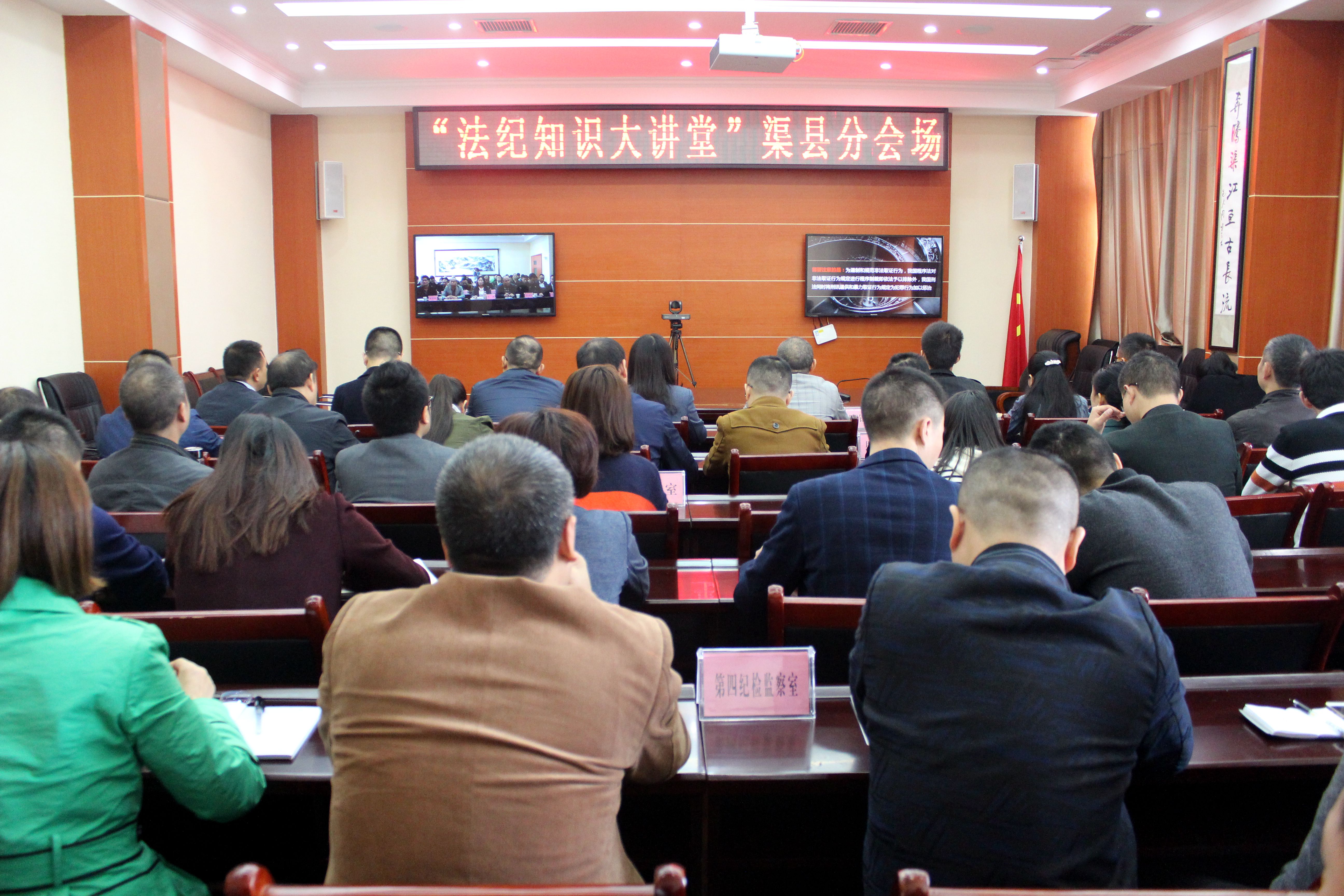 ? ? ? ? 10月20日上午9时,全省“法纪知识大讲堂”首场讲座在省纪委开讲,渠县纪委组织机关党员干部及部分部门纪检干部通过视频会议的方式,认真聆听学习。