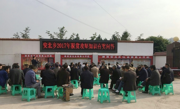 为深入推进脱贫攻坚工作,全面提高人民群众对脱贫攻坚工作的知晓率和满意度,让群众进一步了解和掌握精准扶贫知识;进一步推进“四乡建设 ”工作进村入户,10月31日上午,在乡机关院坝里开展了“脱贫攻坚政策有奖知识问答活动”,全乡部份群众代表共70余人参与此次活动。